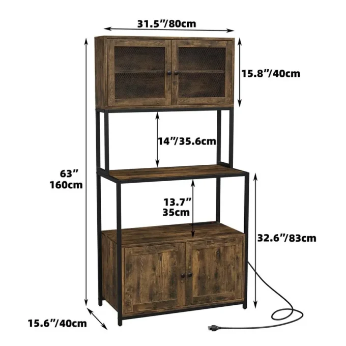6Tier Kitchen Bakers Rack with Power Outlet, Industrial Microwave Oven Stand with Shelves, Dust Prove Door, Standing Ease