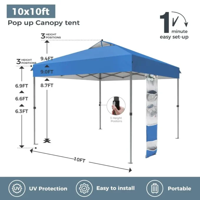 10×10 ft Pop Up Canopy Tent, 1Person Setup Instant Outdoor Canopy with Vented Top, Wheeled Carry Bag, 4 Ropes amp 4 Sandbag Ease