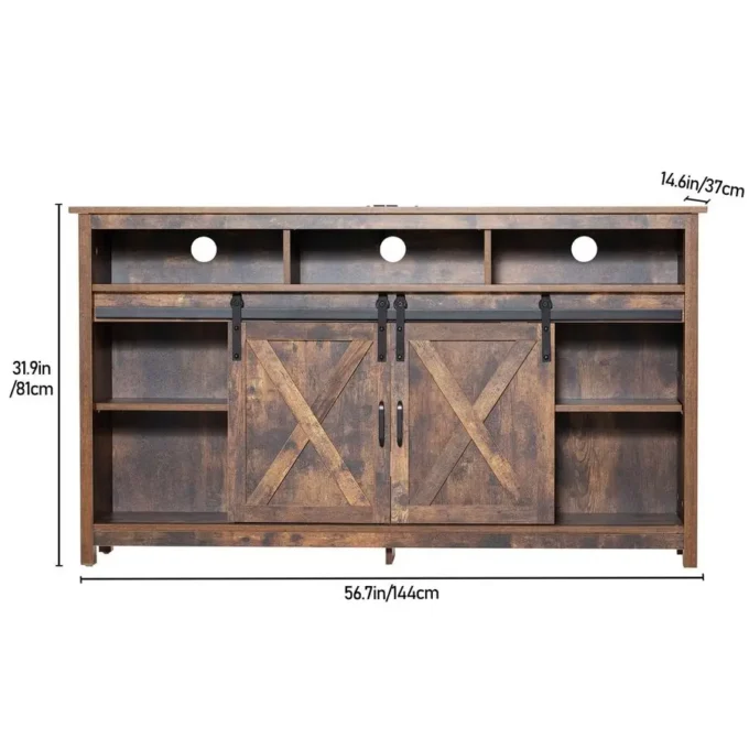Coffee Bar Cabinet with Power Outlet, Rustic Sideboard Buffet Storage Cabinet with Storage, Wood Buffet Cabinet Serving Ease