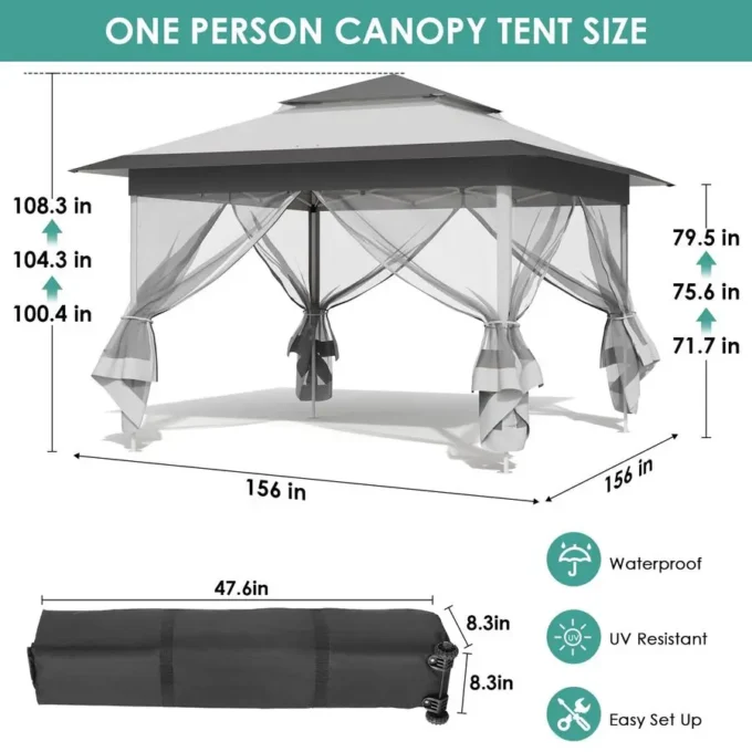 13ft Pop Up Gazebo, Outdoor Instant Canopy Tent w 4 Netting Sidewall amp Auto Extending Eave, Patio Gazebos Shelter w Mesh, Ease