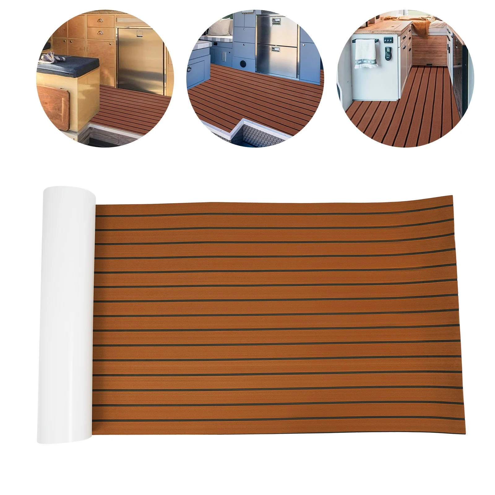 240x90cm EVA Foam Teak Floor Mat 6mm Thick Anti-Slip Self-Adhesive Pad Cuttable Waterproof Marine Carpet for Boat Deck RV Yacht
