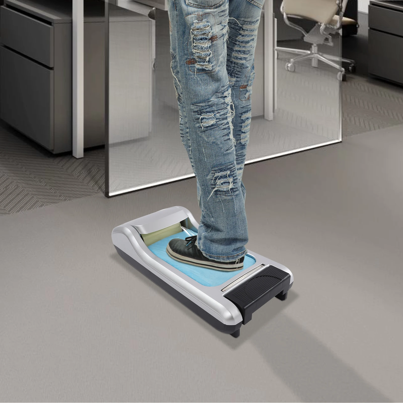 3. Step on the pedal, the blade will pop out and cut off the shoe film.