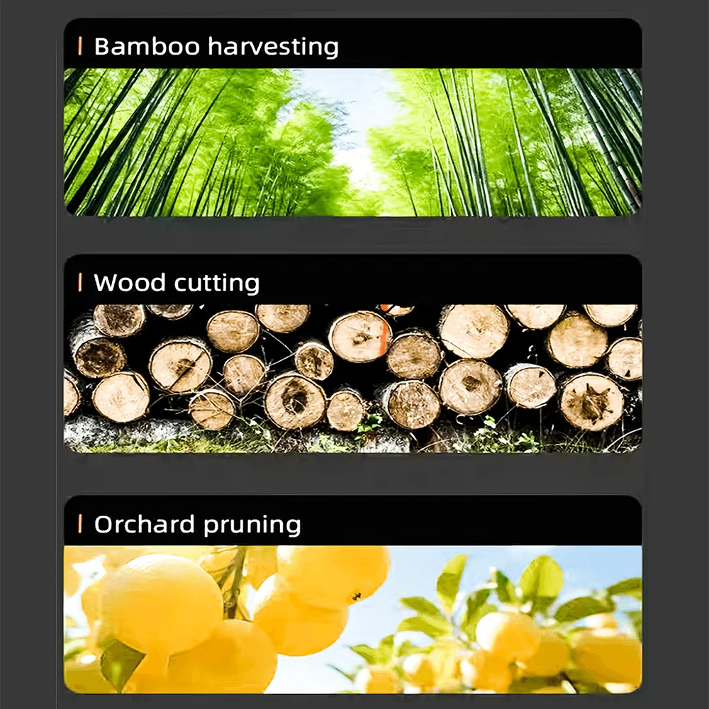 -【Efficient And Easy Cutting】:The cordless electric saw adopts a deeply hardened guide chain design to ensure smooth cutting. Comes with hand guards for extra protection. The maximum cutting diameter is 9.84 inches, perfect for tree cutting and pruning or wild camping.
