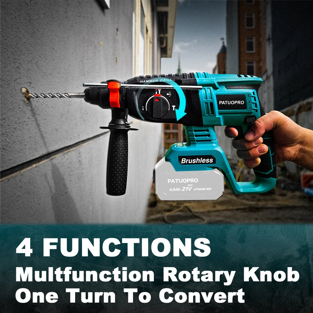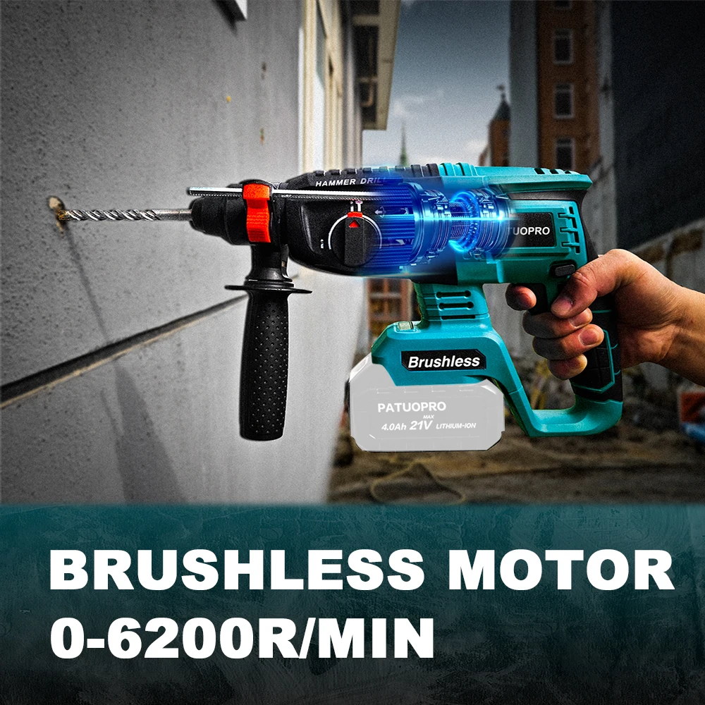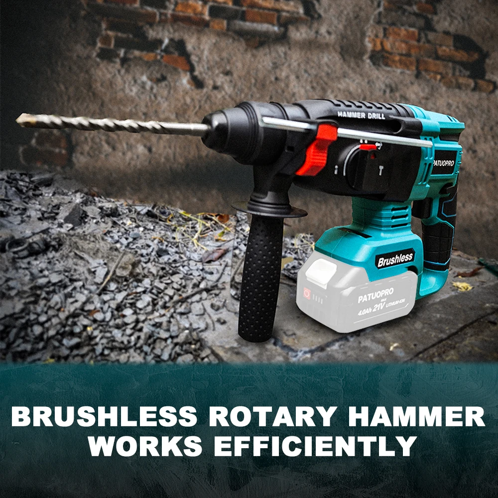 – Powerful Rotary Hammer: Brushless motor adopted by our hammer drill is ideal for the most tedious tasks. It has higher productivity, longer running time, and less heat. The no-load speed of drilling is between 0-900 RPM, and various applications can be completed by adjusting the variable trigger.
