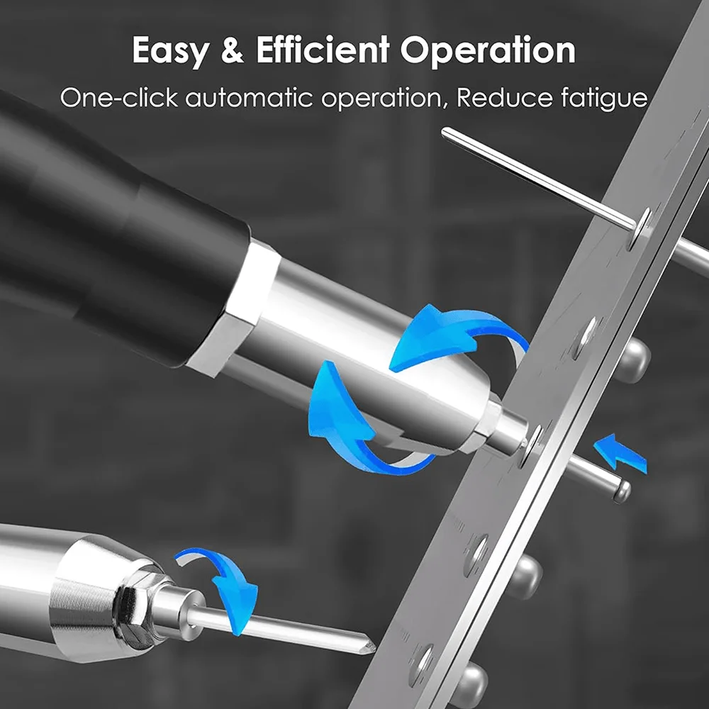 -【Powerful Brushless Motor】: This rivet gun has a powerful brushless motor, which will not produce sparks compared to brushed motors, and there is no need to replace the carbon brushes, providing you with more safety and convenience. Brushless motors allow tools to run cooler, be 50% more efficient, and last longer.