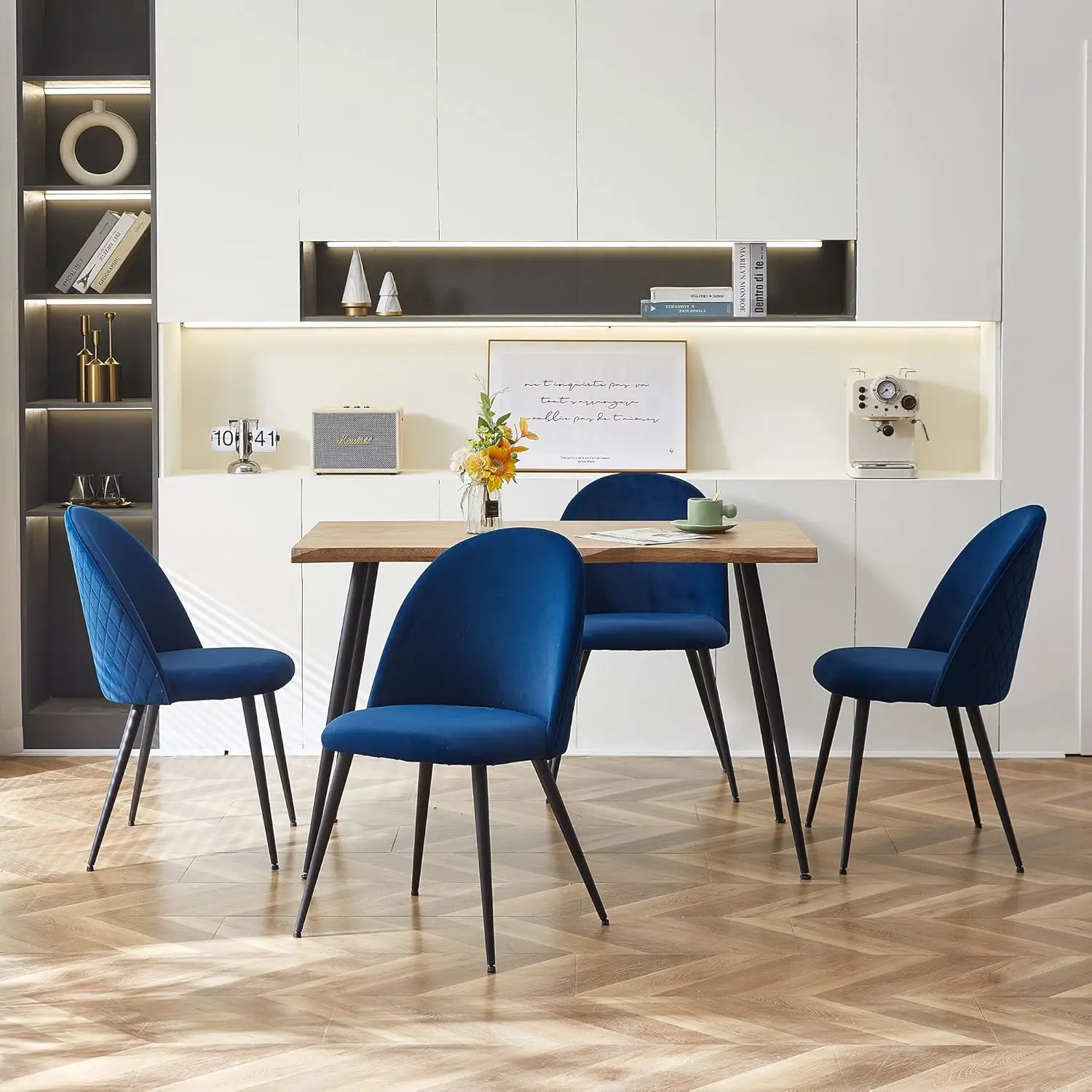 Dining Chair Set of 4 – Velvet Upholstered, Metal Legs, Navy Blue, Comfortable & Simple Design