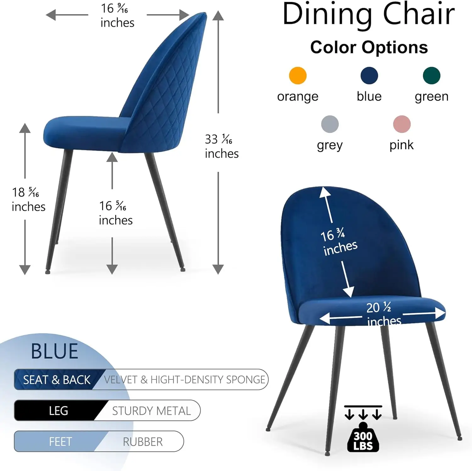 Be the first to review “Dining Chair Set of 4 – Velvet Upholstered, Metal Legs, Navy Blue, Comfortable & Simple Design”