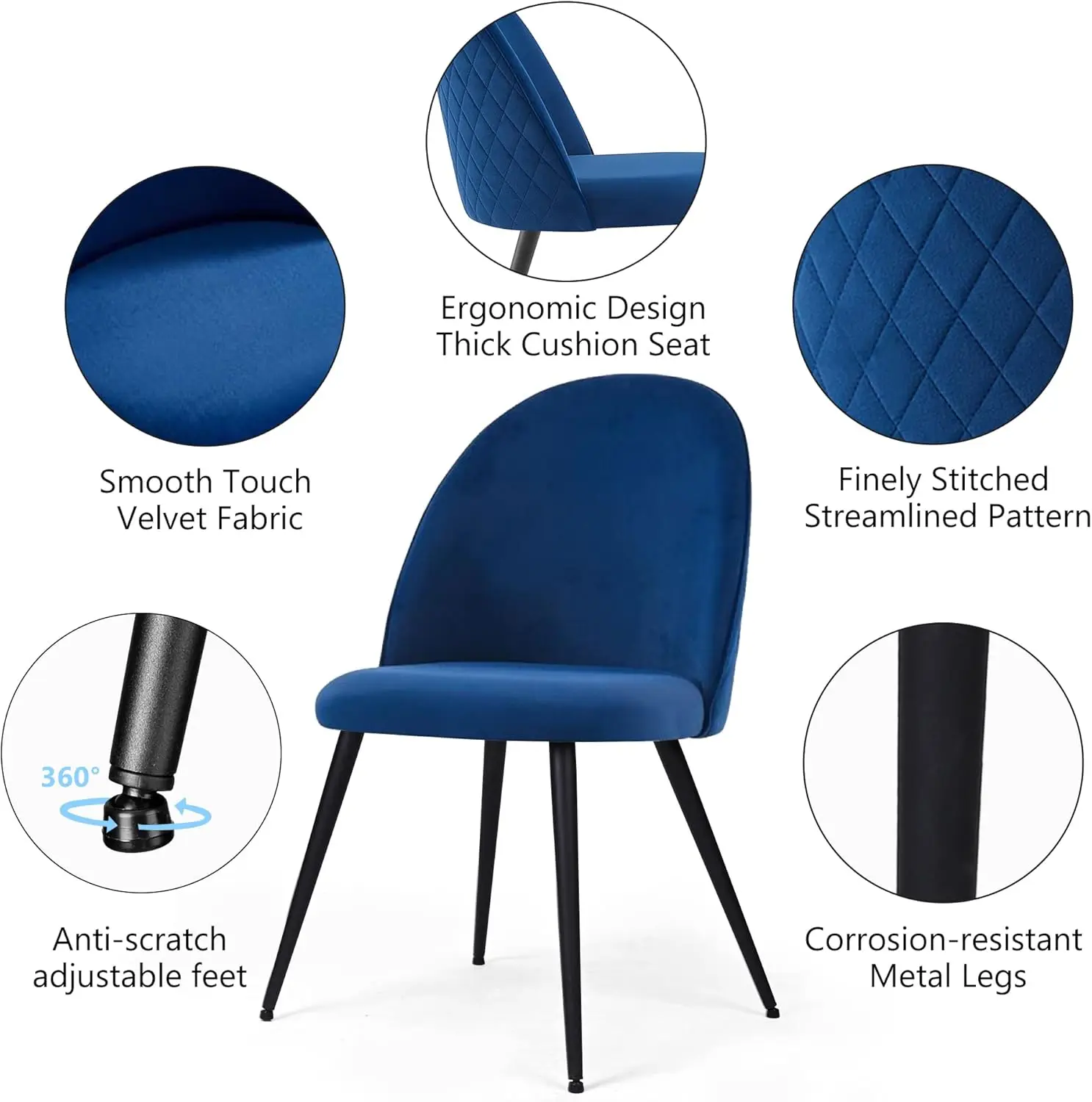 【Comfortable Sitting】:Curved high Backrest with elegant velvet and thick cushion design to support your body better and relax yourself,you’ll get an excellent sitting experience. With a touch of smooth,these soft cushion chairs will be your favorite place to sit on.
