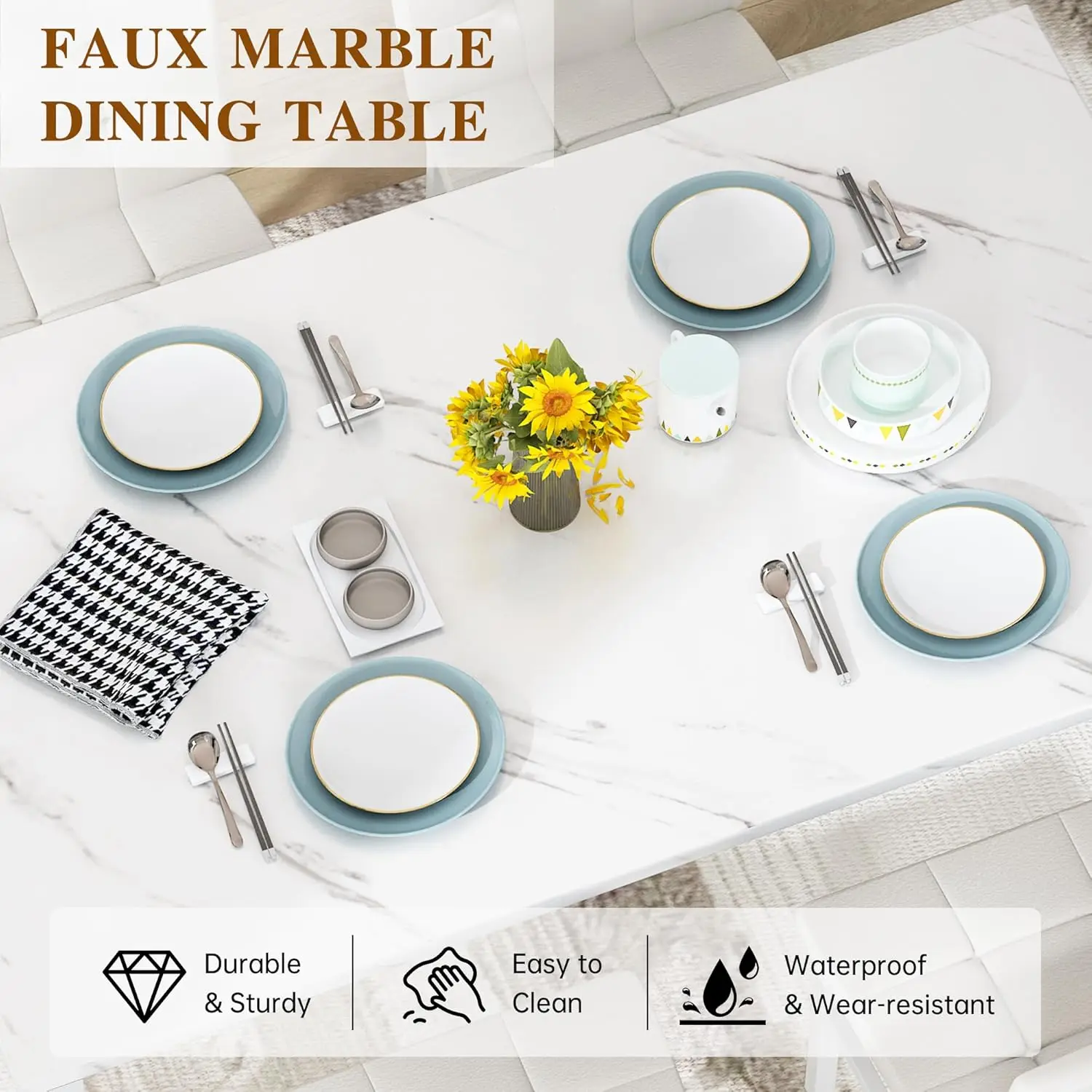 【DINNER TABLE FOR 4】- The dining room table is made of elegant faux marble, suitable for various decoration styles. With an extremely smooth surface that is easy to clean and maintain, The dining table and chair legs come with floor protectors to protect your floors.
