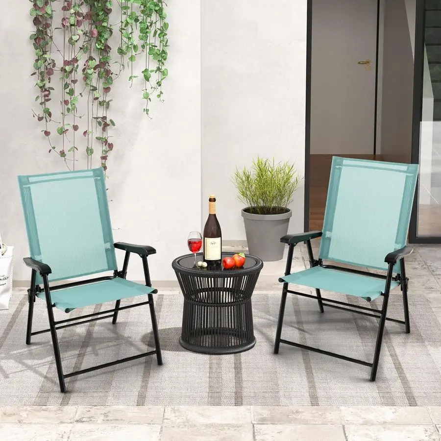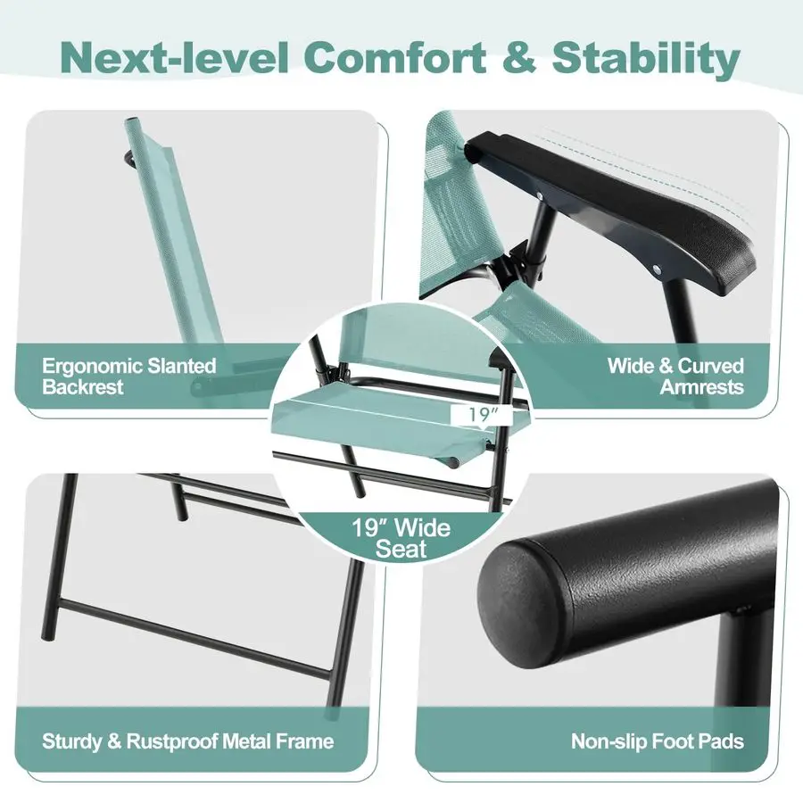 Foldable amp Portable Design Thanks to the quick folding design, the patio sling chairs can be easily stored when not in use. What39s more, the back handle and lightweight design make it convenient for you to carry the chair to any place you want.