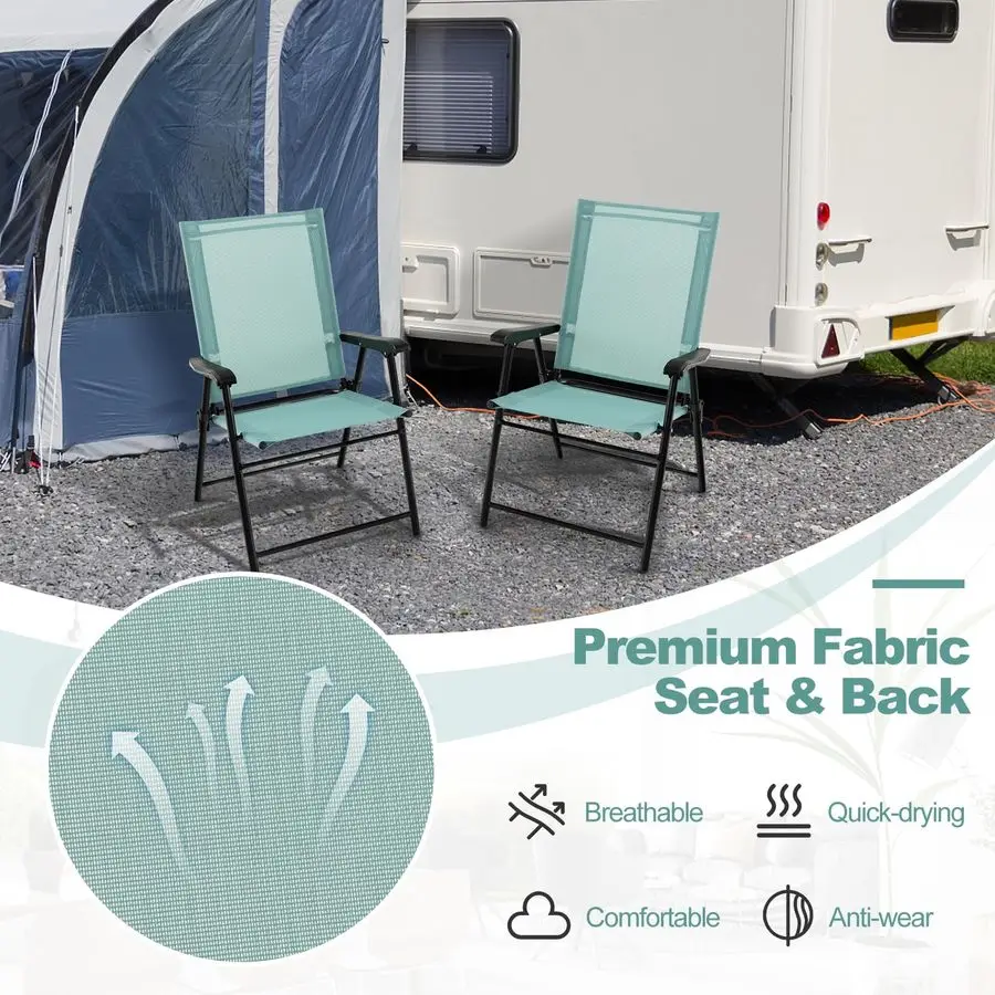 Wide Range of Application This 2 4piece portable folding chairs set is suitable for various occasions, such as patio, poolside, backyard, garden, deck, balcony, etc. And you can also take the chairs for camping, fishing, outdoor BBQ parties, etc.